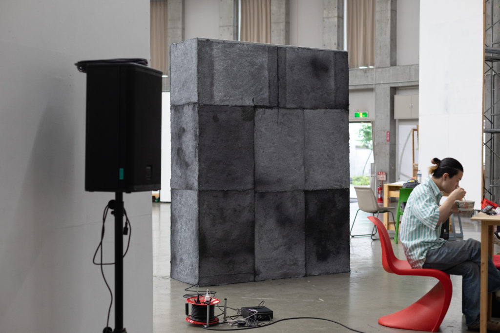 - 音響兵器(垂直-人間)(2024)asphalt,concrete,steel,vibration Statement 鋼の柱で組まれた構造体によって自立するアスファルトの仮設型自立壁。構造体には特殊な振動発生器が取り付けられており、人間の可聴域外の超低 […]